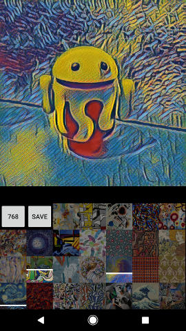 - TF Stylize: Uses a model based on A Learned Representation For Artistic Style to restyle the camera preview image to that of a number of different artists.