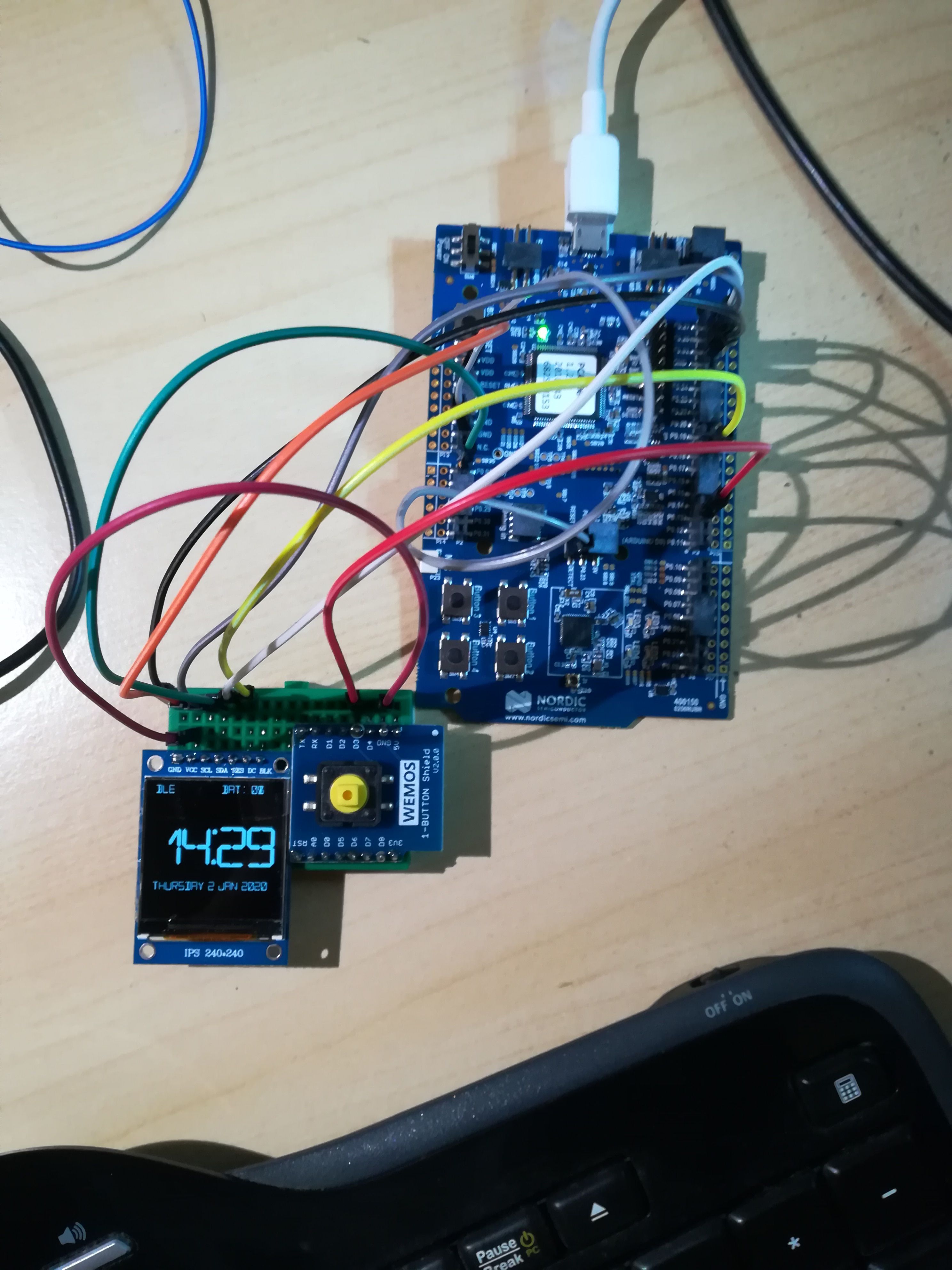 This stub only implements the display, the button and the BLE radio. The other features from the pintime are missing: